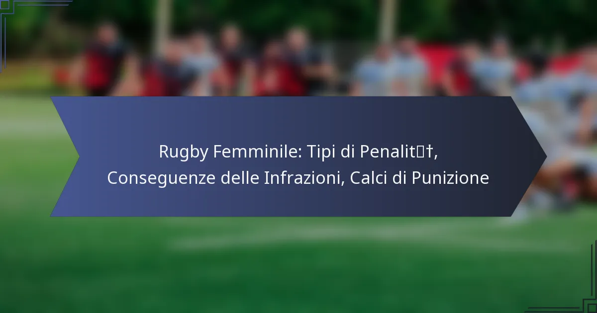 Nel rugby femminile, le infrazioni possono essere categorizzate in infrazioni minori e maggiori. Le infrazioni minori di solito comportano avvertimenti o sospensioni temporanee, mentre le infrazioni maggiori possono portare a penalità più severe come lunghe sospensioni o multe.